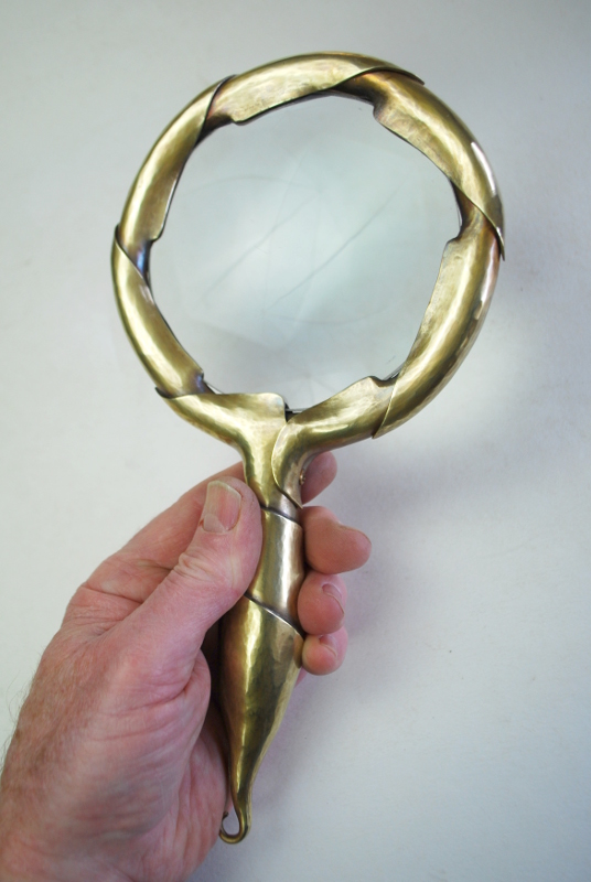 - brass magnifying glass, hammered metal, Magnifier, Magnifying glass, metal art, metalsmithing, shelbyvision, Steve Shelby